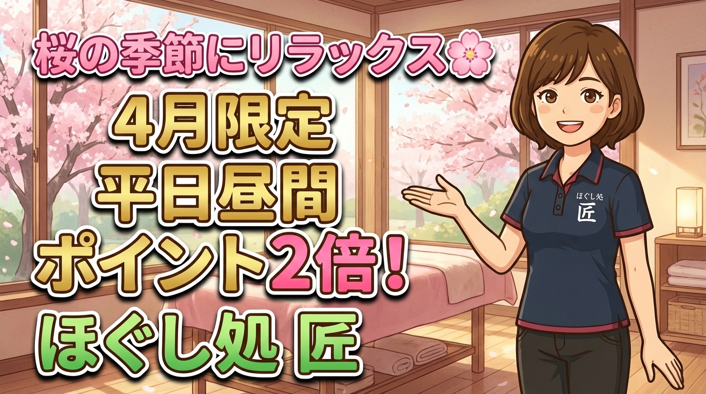 旅行やレジャーを全力で楽しむためにも、GW前に体のコンディションを整えておくのがおすすめです。ポイント2倍のこの機会に、ぜひご利用ください。