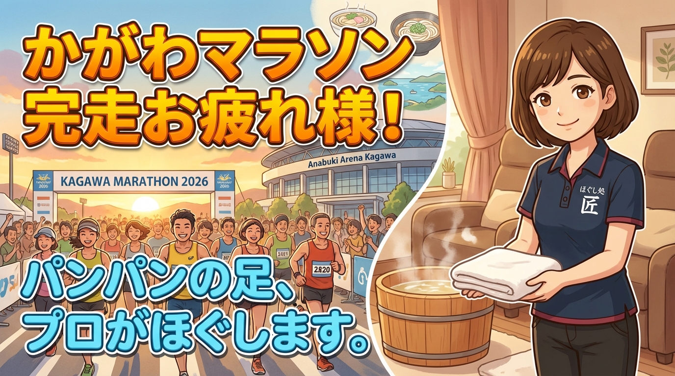 かがわマラソン2026は、香川県にとって記念すべき初のフルマラソン大会。走り切った達成感のあとは、頑張った体をしっかりいたわってあげてください。